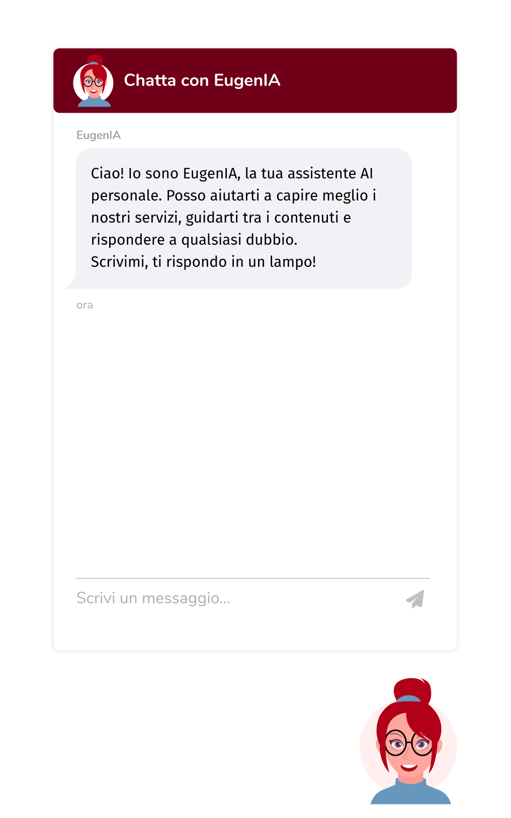 Con EugenIA ogni informazione che inserisci o condividi resta sotto il tuo pieno controllo: non viene inviata a piattaforme esterne, non viene tracciata da terze parti e non viene utilizzata per addestrare il modello.